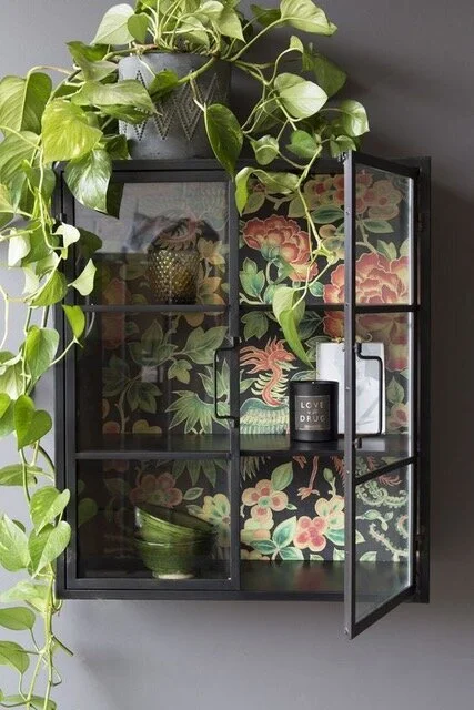 So, you simply choose the wallpaper you like, grab you love, cut it to size for your chosen style of shelves, apply to the back using wallpaper paste or adhesive (you can give it a coat of varnish for extra protection if you wish) and fill your shelves with your chosen bits and bobs.